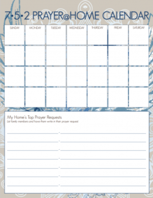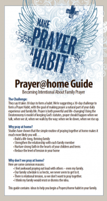 Take the challenge to make prayer a habit in your home. Click the icons below for the Prayer@home Prayer Guide and a 7.5.2 Prayer Calendar.